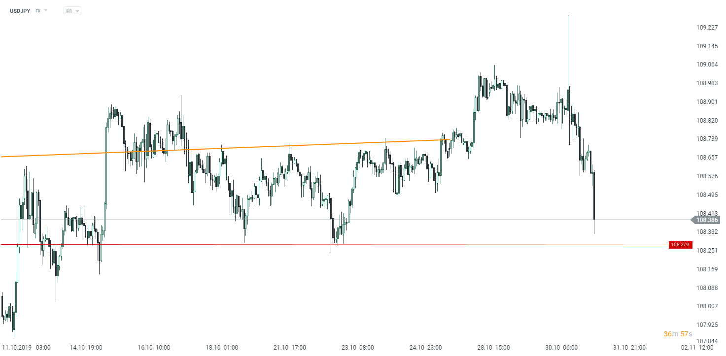 O USDJPY está em queda no relatório da Bloomberg report. Fonte: xStation5