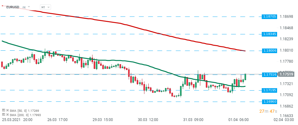 EURUSD subiu despois da divulgação dos dados e testa os 1.1751. Fonte:xStation5
