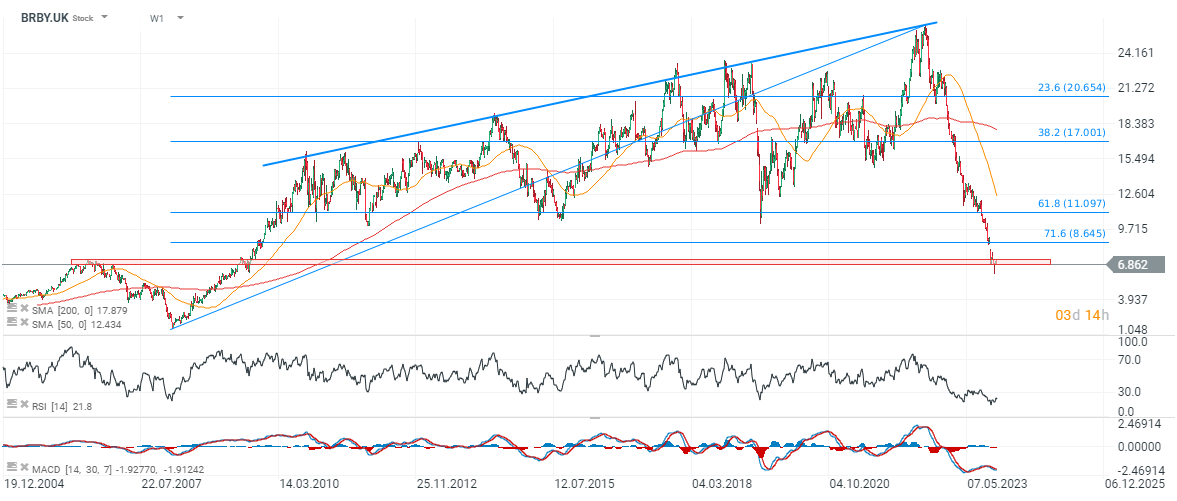 As ações da Burberry (BRBY.UK), estão a recuar mais de 1,5%, uma vez que o FTSE Russel informou que a empresa, provavelmente, deixará de fazer parte do principal índice britânico, a partir de setembro de 2024. As ações da Burberry já desvalorizaram mais de 50% este ano. A empresa espera que os lucros para o resto do ano caiam 40% em relação ao ano anterior. As vendas de produtos de luxo na Ásia e na China (historicamente “sector em crescimento”) caíram 21% e 23%, respetivamente. A Burberry mudou de CEO no mês passado, para Joshua Schulman, antigo CEO da Jimmy Choo (desde 2007 a 2012).
