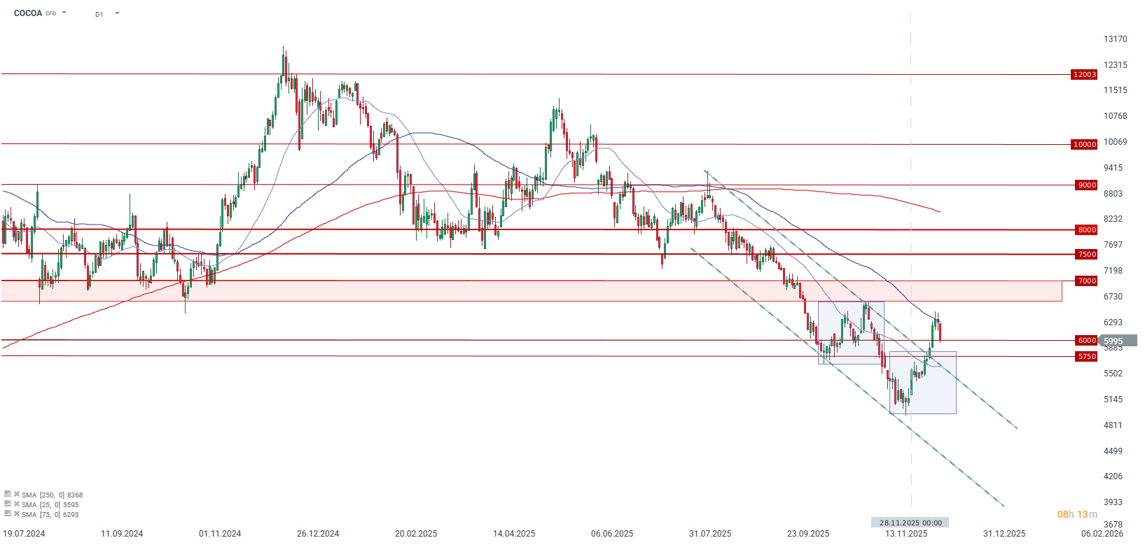 O preço do cacau está a sofrer uma forte retração após um período de ganhos robustos entre o final de novembro e o início de dezembro. Essa recuperação anterior foi impulsionada por novas previsões de um excedente de oferta para toda a época anterior e pela incerteza persistente em torno dos níveis atuais de colheita. Além disso, o preço atual é aproximadamente metade do nível registrado em dezembro de 2024, quando as expectativas para a produção de cacau nos países africanos eram altamente pessimistas.
