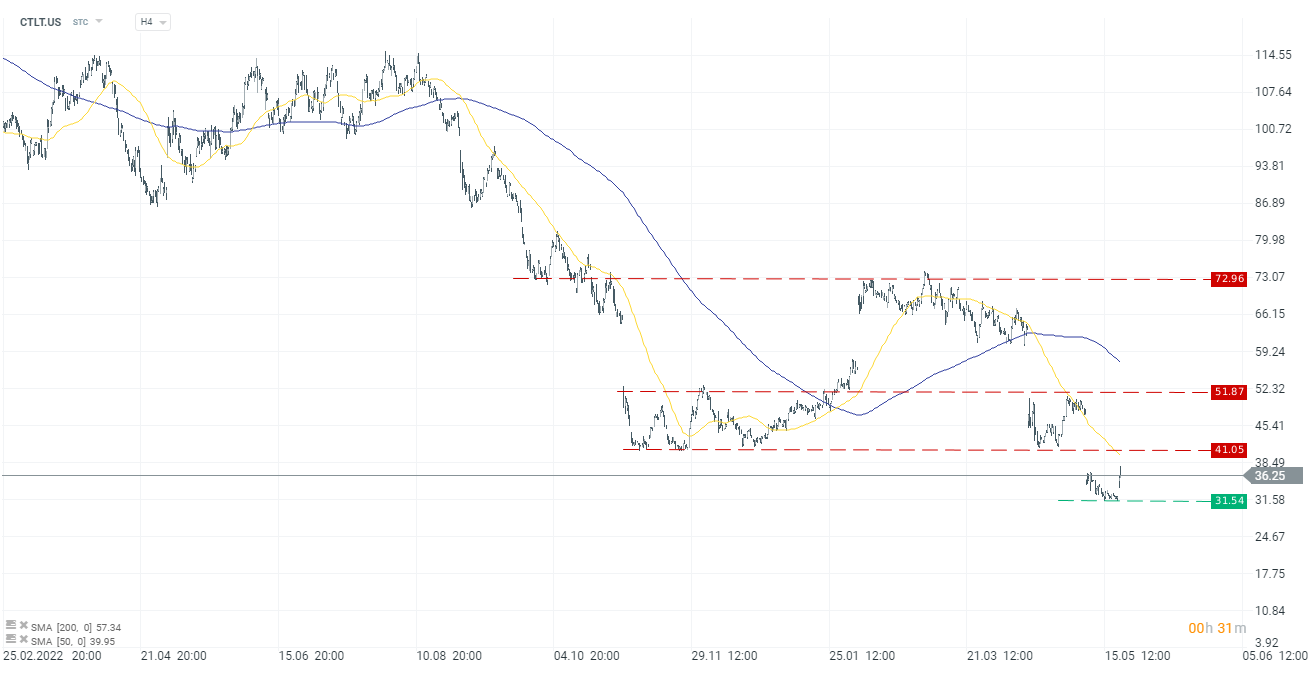Preço das ações da Catalent (CTLT.US), D1, Fonte: xStation 5