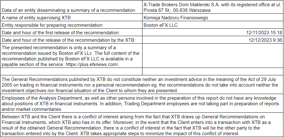 Este material é uma comunicação de marketing na aceção do artigo 24.º, n.º 3, da Diretiva 2014/65 / UE do Parlamento Europeu e do Conselho, de 15 de maio de 2014, sobre os mercados de instrumentos financeiros e que altera a Diretiva 2002/92 / CE e Diretiva 2011/61/ UE (MiFID II). A comunicação de marketing não é uma recomendação de investimento ou informação que recomenda ou sugere uma estratégia de investimento na aceção do Regulamento (UE) n.º 596/2014 do Parlamento Europeu e do Conselho de 16 de abril de 2014 sobre o abuso de mercado (regulamentação do abuso de mercado) e revogação da Diretiva 2003/6 / CE do Parlamento Europeu e do Conselho e das Diretivas da Comissão 2003/124 / CE, 2003/125 / CE e 2004/72 / CE e do Regulamento Delegado da Comissão (UE ) 2016/958 de 9 de março de 2016 que completa o Regulamento (UE) n.º 596/2014 do Parlamento Europeu e do Conselho no que diz respeito às normas técnicas regulamentares para as disposições técnicas para a apresentação objetiva de recomendações de investimento, ou outras informações, recomendação ou sugestão de uma estratégia de investimento e para a divulgação de interesses particulares ou indicações de conflitos de interesse ou qualquer outro conselho, incluindo na área de consultoria de investimento, nos termos do Código dos Valores Mobiliários, aprovado pelo Decreto-Lei n.º 486/99, de 13 de Novembro. A comunicação de marketing é elaborada com a máxima diligência, objetividade, apresenta os factos do conhecimento do autor na data da preparação e é desprovida de quaisquer elementos de avaliação. A comunicação de marketing é elaborada sem considerar as necessidades do cliente, a sua situação financeira individual e não apresenta qualquer estratégia de investimento de forma alguma. A comunicação de marketing não constitui uma oferta ou oferta de venda, subscrição, convite de compra, publicidade ou promoção de qualquer instrumento financeiro. A XTB, S.A. - Sucursal em Portugal não se responsabiliza por quaisquer ações ou omissões do cliente, em particular pela aquisição ou alienação de instrumentos financeiros. A XTB não aceitará a responsabilidade por qualquer perda ou dano, incluindo, sem limitação, qualquer perda que possa surgir direta ou indiretamente realizada com base nas informações contidas na presente comunicação comercial. Caso o comunicado de marketing contenha informações sobre quaisquer resultados relativos aos instrumentos financeiros nela indicados, estes não constituem qualquer garantia ou previsão de resultados futuros. O desempenho passado não é necessariamente indicativo de resultados futuros, e qualquer pessoa que atue com base nesta informação fá-lo inteiramente por sua conta e risco.