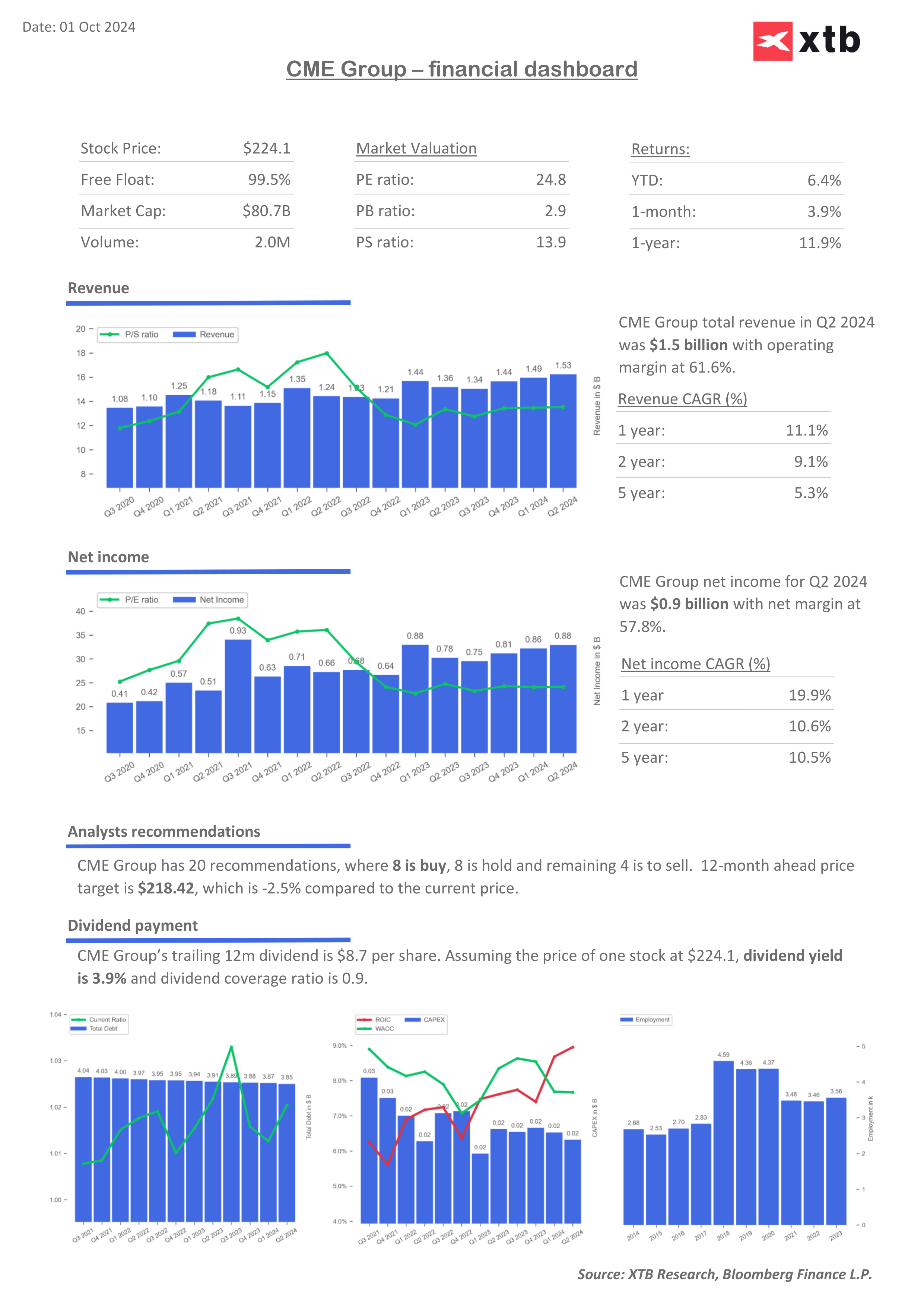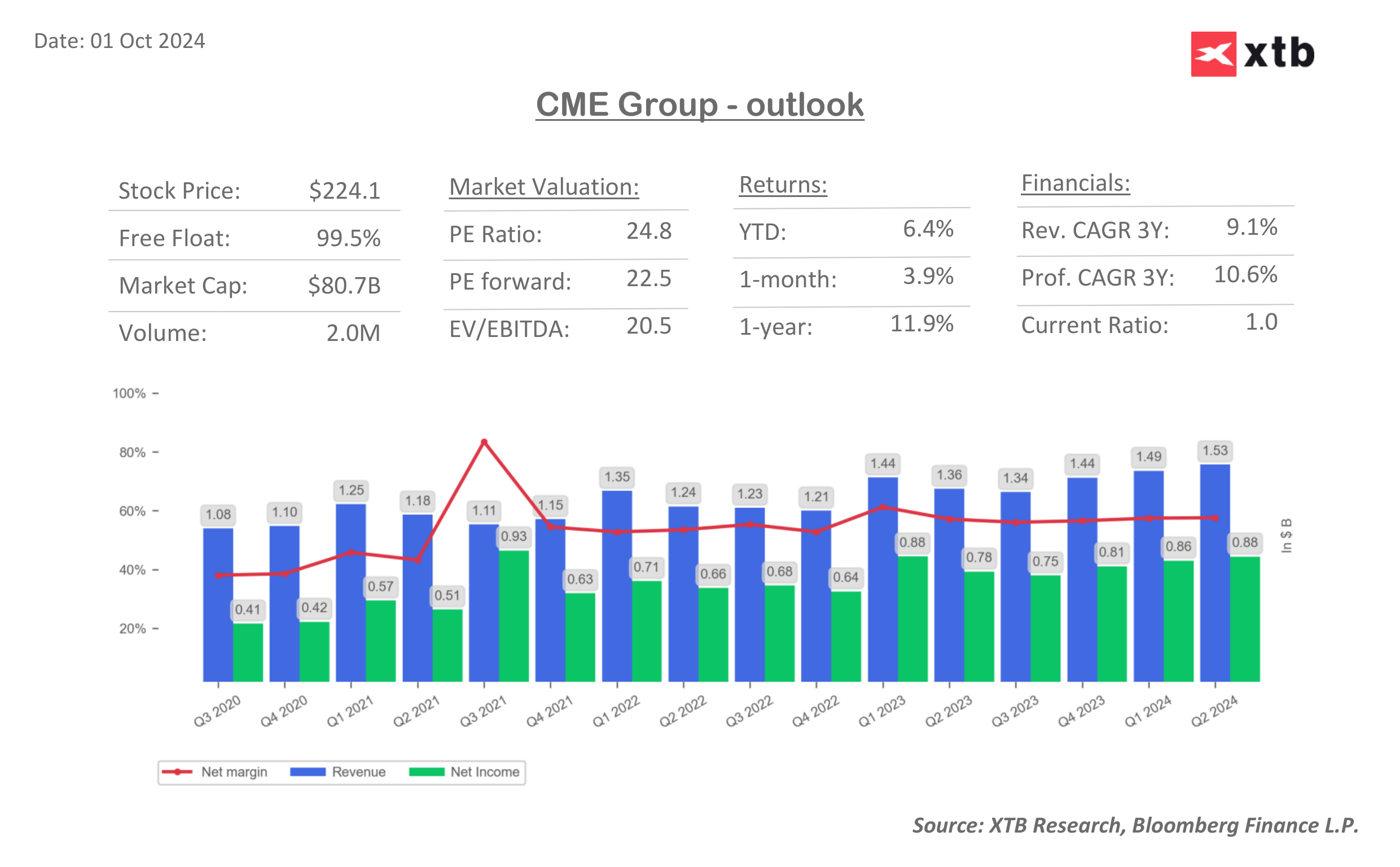 - O Citi afirma que, com a atual incerteza geopolítica, as próximas eleições e a orientação da política da Reserva Federal, as perspectivas para a CME continuam a ser boas. A carteira diversificada de activos e a grande liquidez da empresa são consideradas vantagens fundamentais que lhe permitem manter uma vantagem significativa no mercado. Por outro lado, existe alguma pressão por parte da rival FMX, apoiada pela BlackRock e pela Citadel, mas espera-se que o aspeto negativo resultante desta situação seja já capturado no preço atual das acções.