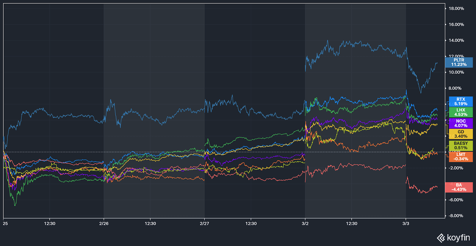 A Palantir Technologies passou a ser tratada pelo mercado como uma ação associada ao setor da defesa, uma vez que a escalada de tensões foi interpretada como um catalisador para maior procura por integração de dados, planeamento operacional e suporte à inteligência — especialmente quando aumenta a coordenação entre sensores, plataformas e sistemas de combate.