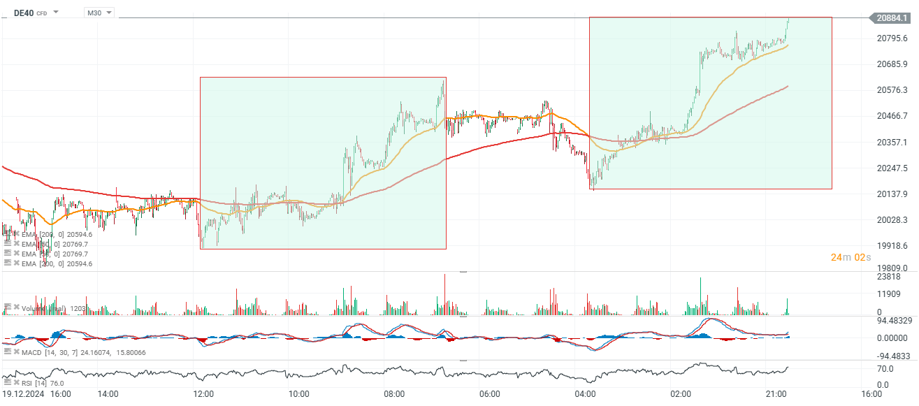 - Os contratos do índice alemão DAX (DE40) estão a negociar em novos máximos históricos