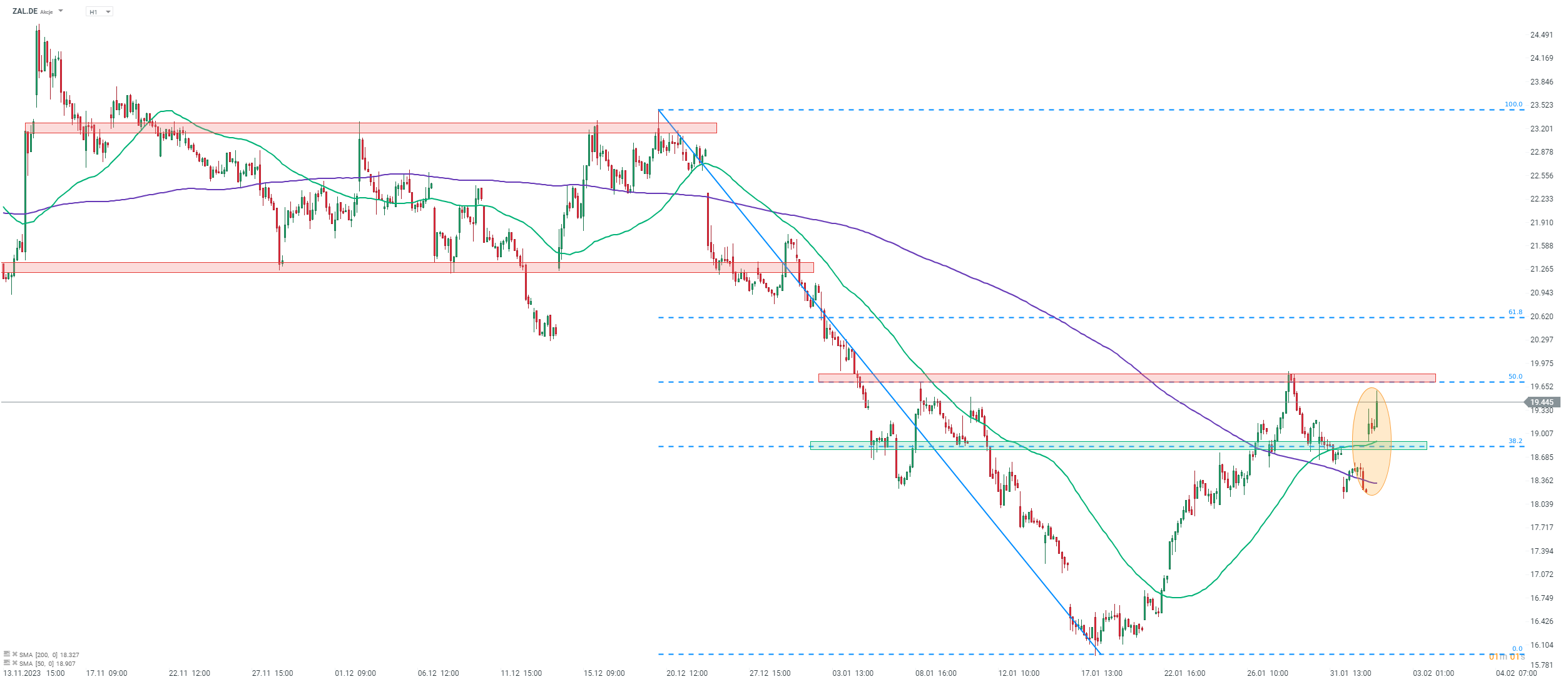 A atualização do Morgan Stanley está a alimentar um aumento nas ações da Zalando hoje (ZAL.DE). As ações estão a ser negociadas cerca de 7% mais altas no dia e estão a aproximar-se de uma zona de resistência de curto prazo marcada com um pico local recente, bem como 50% de retração do impulso descendente lançado em 12 de dezembro de 2023. Fonte: xStation5