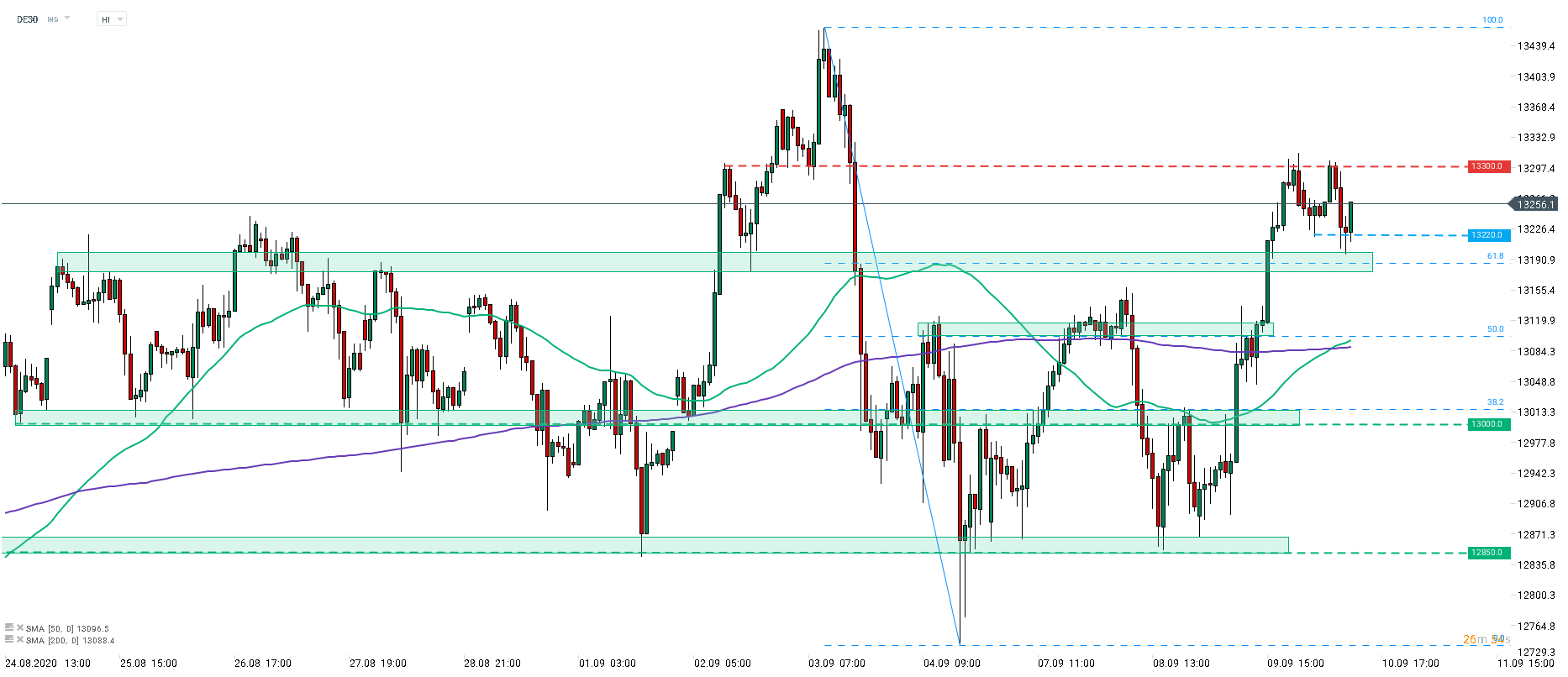 DE30 tem vindo a recuperar grande parte das perdas depois dos últimos dias da última semana que registaram correções acentuadas. Neste moment conseguimos ver, através do gráfico que o preço tem estado abrandar a tendência e encontra-se neste momento a testar a zona de suporte na qual tem dado sinais de rejeição à mesma.