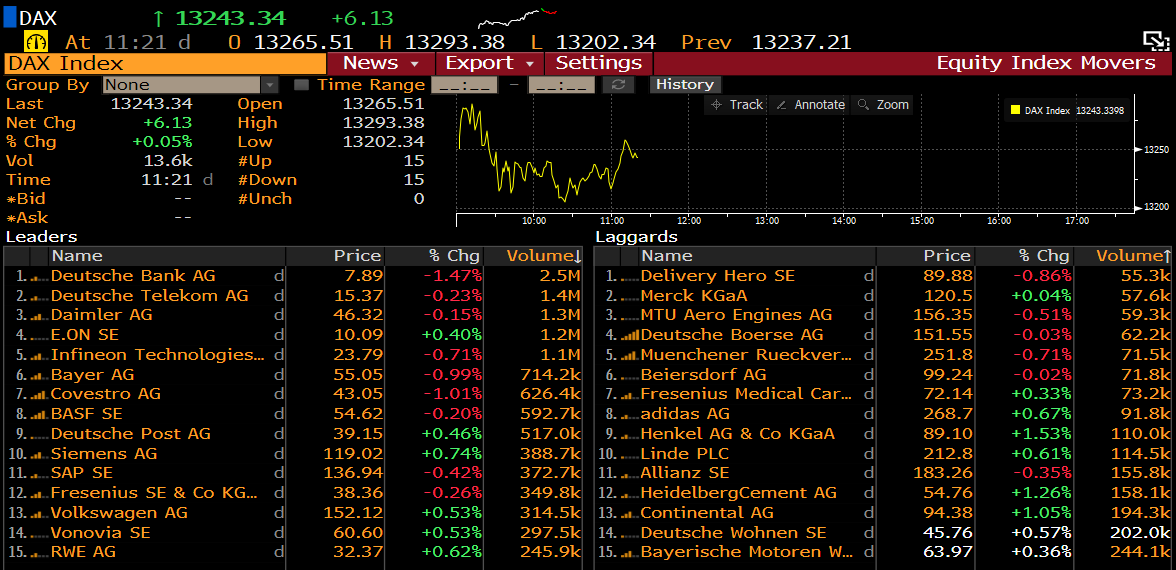 Empresas alemãs cotadas no DAX 10:21. Fonte: Bloomberg