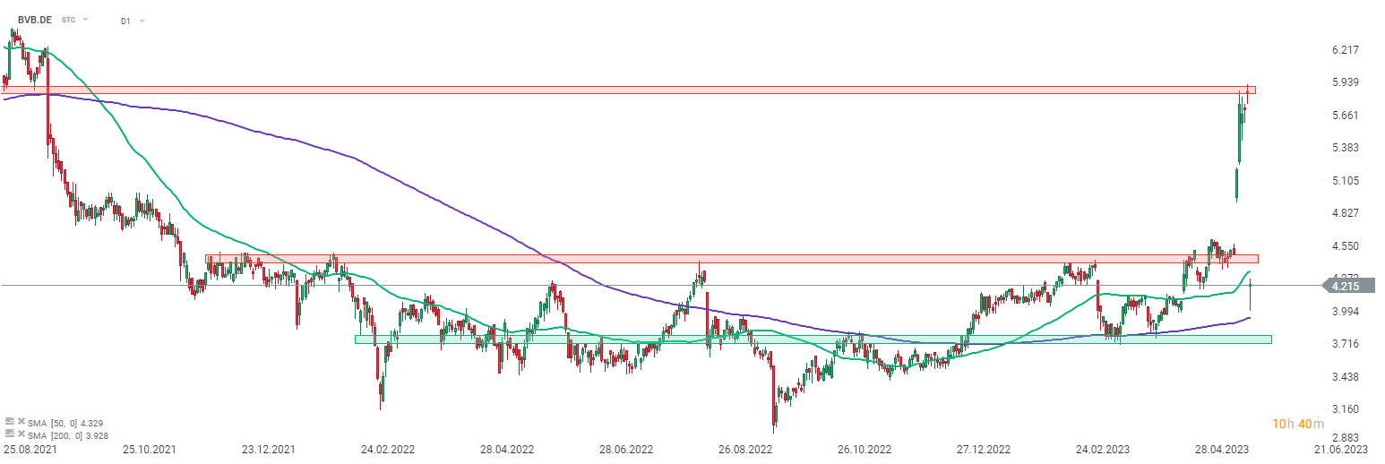 O preço das ações do Borussia Dortmund (BVB.DE) caiu hoje depois de a equipa de futebol não ter conseguido ganhar o título da Bundesliga no fim-de-semana. As ações apagaram a recente subida feita no meio de expectativas crescentes de que a equipa irá garantir o seu primeiro título da Bundesliga em 12 anos. As ações caíram para um mínimo de um mês no início da sessão de hoje, mas conseguiram recuperar parte das perdas. Fonte: xStation5
