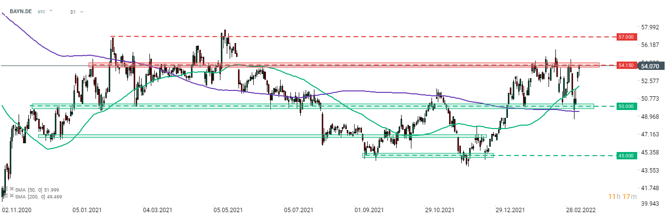 Bayer (BAYN.DE) launched today's trading higher following news of pesticide unit sale. Stock is testing a resistance zone ranging around €54.15 mark, that has limited upward moves in recent months. In case bulls manage to clear this hurdle, an upward move towards the €57.00 area could be on the cards. Source: xStation5