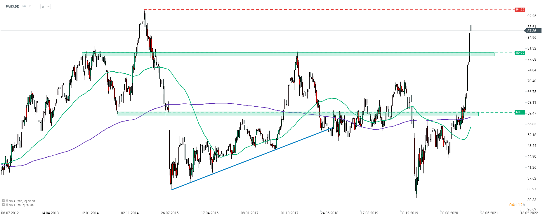 Porsche (PAH3.DE) já recuperou mais de 50% do valor das suas ações até agora e neste momento aproxima-se de testar os máximos dos últimos 6 anos localizados nos € 94,55. No entanto, os compradores não conseguiram manter esses ganhos e o preço das ações acabou por registar algumas correções em baixa que foram motivadas pelas fracas perspetivas para 2021. As ações estão a ser negociadas 7% abaixo durante a sessão de hoje. Fonte: xStation5