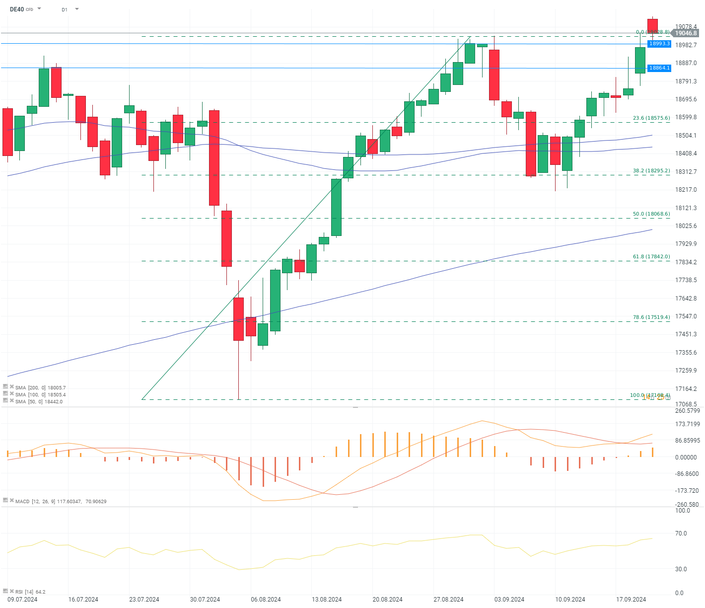Os mercados europeus estão a recuar esta manhã, após os fortes ganhos registados na sessão anterior. O CAC40 francês está a perder 0,4%. O DAX oscila em torno dos níveis mais elevados de sempre. A atenção dos investidores estará sobretudo centrada nos dados canadianos, uma vez que os dados europeus já foram publicados. Os preços no produtor alemão caíram 0,8% em agosto, em termos anuais. Os dados desta manhã do Reino Unido mostraram um aumento de 1% nas vendas a retalho de agosto. O sentimento dos consumidores em setembro caiu para o seu nível mais baixo desde janeiro.