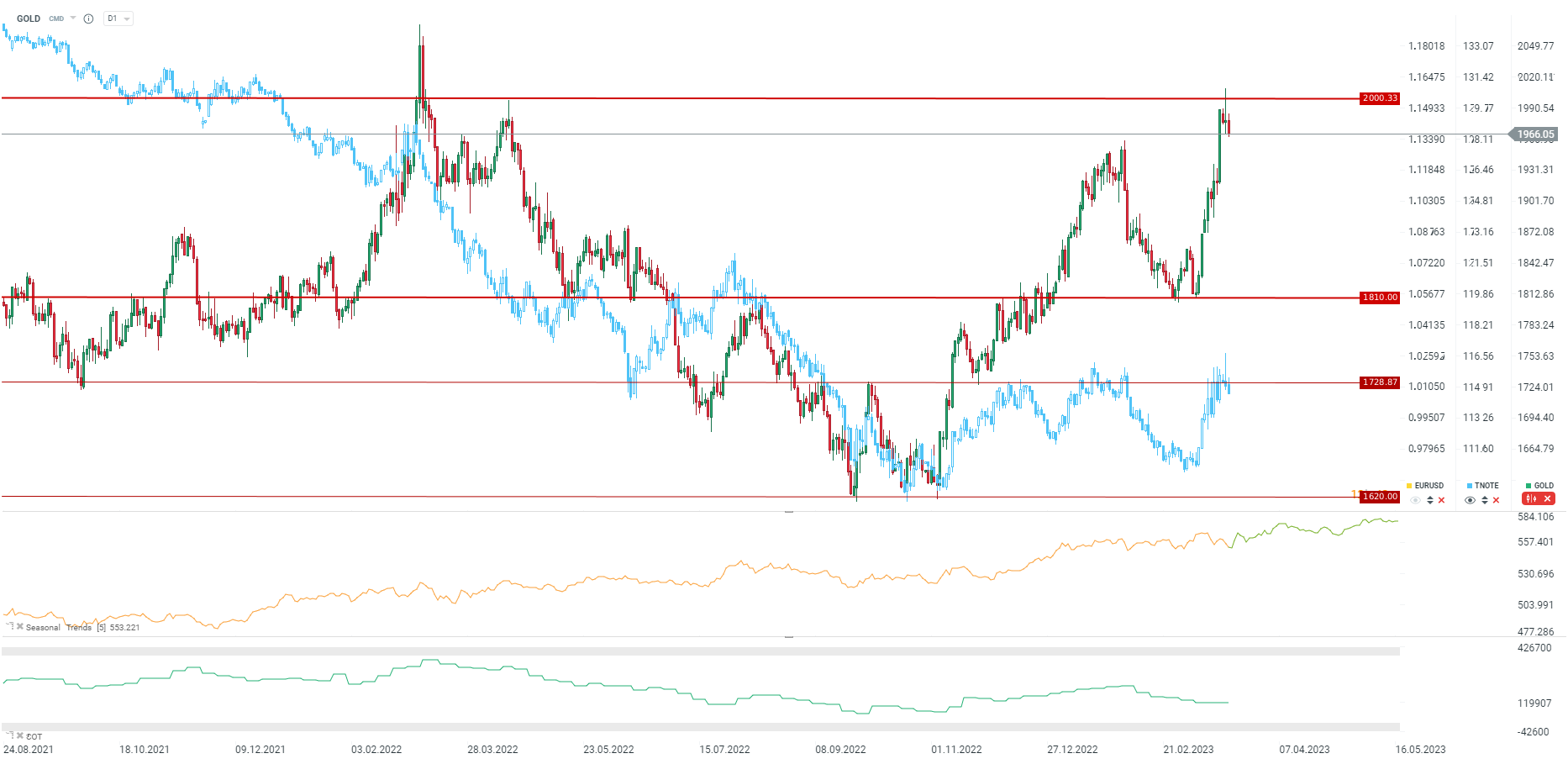 No entanto, os preços das obrigações americanas aproximaram-se de uma resistência. A próxima decisão da taxa FOMC, e mais precisamente novas previsões, será fundamental para futuros movimentos sobre o ouro