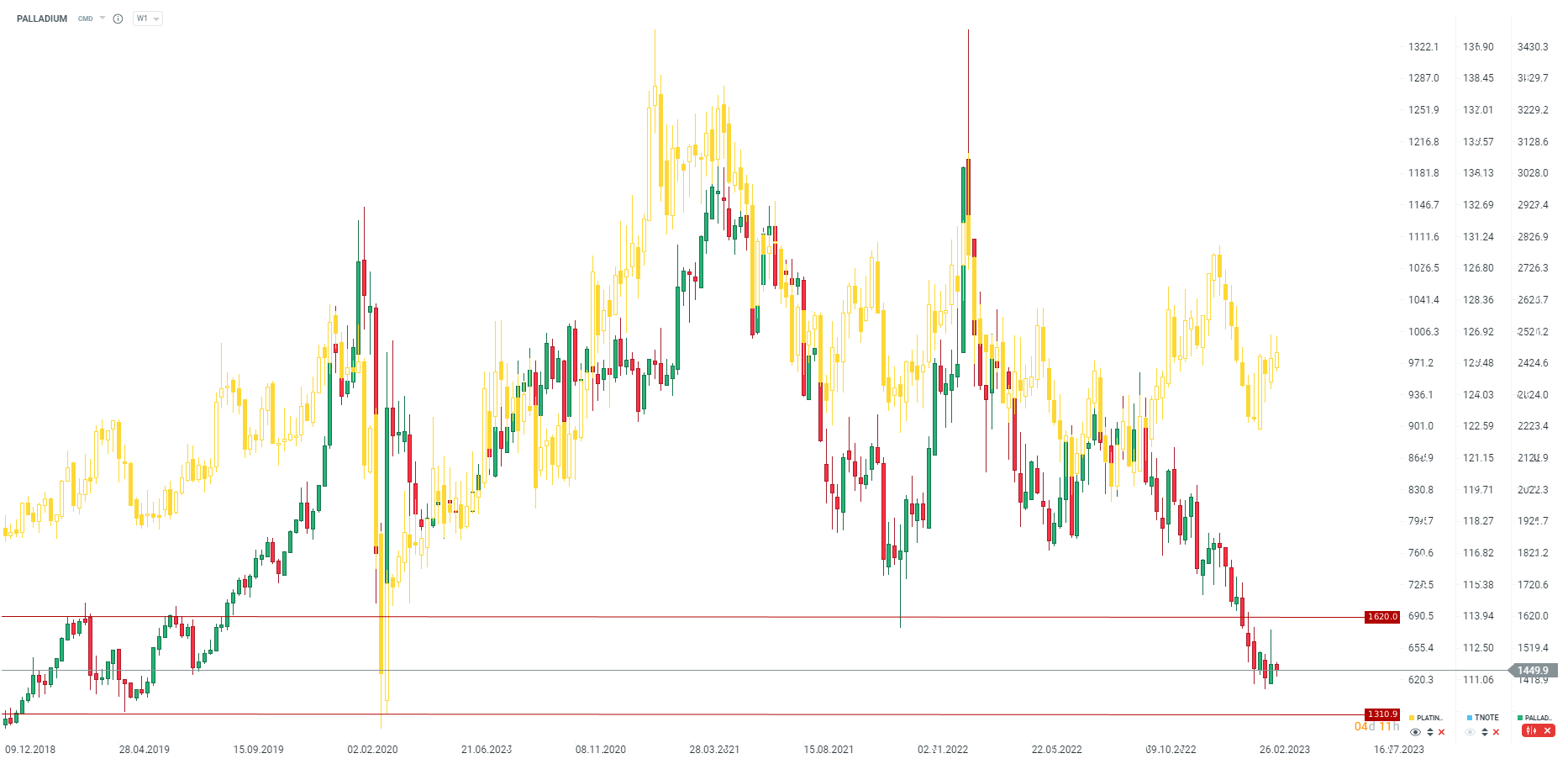 A relação entre os preços do paládio e os preços da platina deve avançar no sentido da paridade