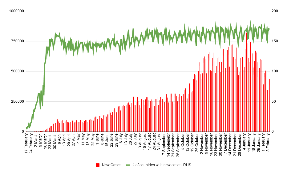 Quase 440 mil novos casos de coronavírus foram relatados durante a sessão de ontem. Fonte: worldômetros, XTB