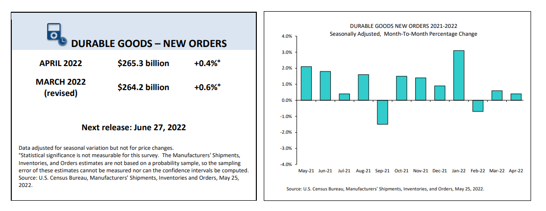 - As encomendas de bens duradouros dos EUA aumentaram 0,4% m/m, mas esperava-se um aumento de 0,6% m/m