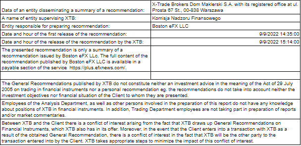 Este material é uma comunicação de marketing na aceção do artigo 24.º, n.º 3, da Diretiva 2014/65 / UE do Parlamento Europeu e do Conselho, de 15 de maio de 2014, sobre os mercados de instrumentos financeiros e que altera a Diretiva 2002/92 / CE e Diretiva 2011/61/ UE (MiFID II). A comunicação de marketing não é uma recomendação de investimento ou informação que recomenda ou sugere uma estratégia de investimento na aceção do Regulamento (UE) n.º 596/2014 do Parlamento Europeu e do Conselho de 16 de abril de 2014 sobre o abuso de mercado (regulamentação do abuso de mercado) e revogação da Diretiva 2003/6 / CE do Parlamento Europeu e do Conselho e das Diretivas da Comissão 2003/124 / CE, 2003/125 / CE e 2004/72 / CE e do Regulamento Delegado da Comissão (UE ) 2016/958 de 9 de março de 2016 que completa o Regulamento (UE) n.º 596/2014 do Parlamento Europeu e do Conselho no que diz respeito às normas técnicas regulamentares para as disposições técnicas para a apresentação objetiva de recomendações de investimento, ou outras informações, recomendação ou sugestão de uma estratégia de investimento e para a divulgação de interesses particulares ou indicações de conflitos de interesse ou qualquer outro conselho, incluindo na área de consultoria de investimento, nos termos do Código dos Valores Mobiliários, aprovado pelo Decreto-Lei n.º 486/99, de 13 de Novembro. A comunicação de marketing é elaborada com a máxima diligência, objetividade, apresenta os factos do conhecimento do autor na data da preparação e é desprovida de quaisquer elementos de avaliação. A comunicação de marketing é elaborada sem considerar as necessidades do cliente, a sua situação financeira individual e não apresenta qualquer estratégia de investimento de forma alguma. A comunicação de marketing não constitui uma oferta ou oferta de venda, subscrição, convite de compra, publicidade ou promoção de qualquer instrumento financeiro. A XTB, S.A. - Sucursal em Portugal não se responsabiliza por quaisquer ações ou omissões do cliente, em particular pela aquisição ou alienação de instrumentos financeiros. A XTB não aceitará a responsabilidade por qualquer perda ou dano, incluindo, sem limitação, qualquer perda que possa surgir direta ou indiretamente realizada com base nas informações contidas na presente comunicação comercial. Caso o comunicado de marketing contenha informações sobre quaisquer resultados relativos aos instrumentos financeiros nela indicados, estes não constituem qualquer garantia ou previsão de resultados futuros. O desempenho passado não é necessariamente indicativo de resultados futuros, e qualquer pessoa que atue com base nesta informação fá-lo inteiramente por sua conta e risco.