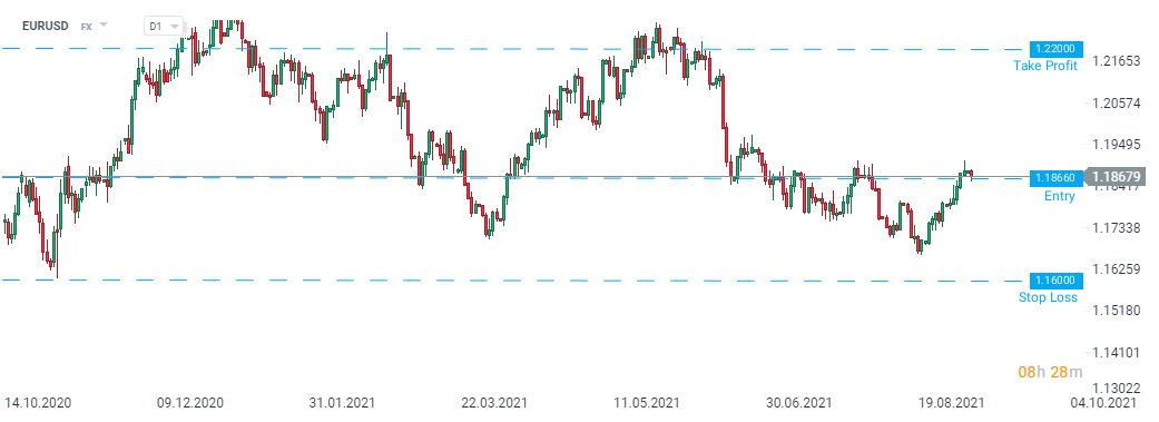 Nomura recomenda entradas longas no par EURUSD ao preço 1.1866 com target nos 1.2200 e stop loss nos 1.1600. Fonte: xStation5