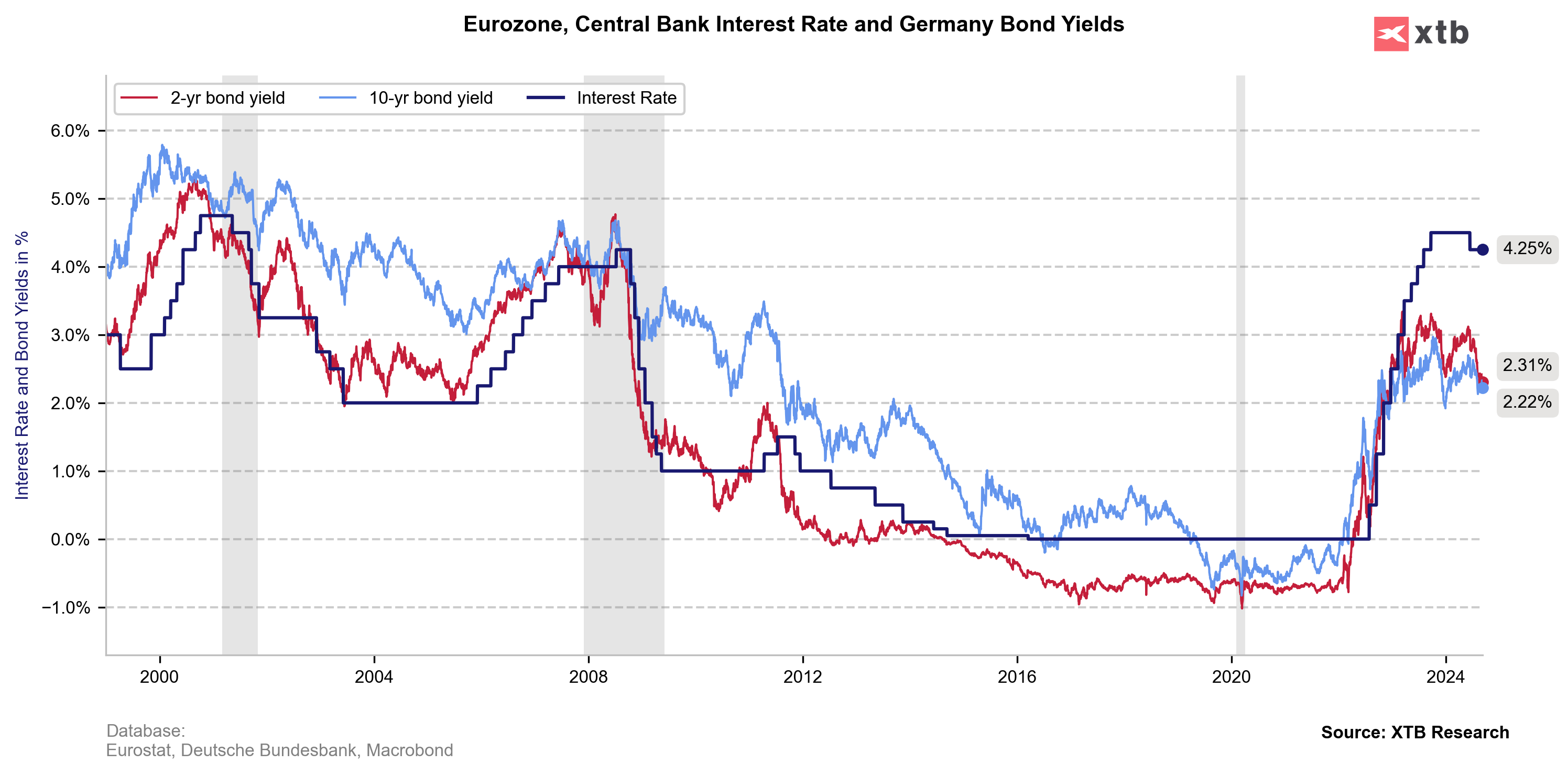 As yields das obrigações sugerem que a taxa objetivo deverá situar-se em torno de 2,25-2,5%. Fonte: Bloomberg Finance LP, XTB