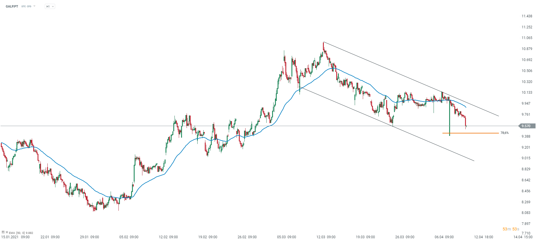 GALP (GALP.PT). Gráfico 1 hora. Fonte: xStation 5