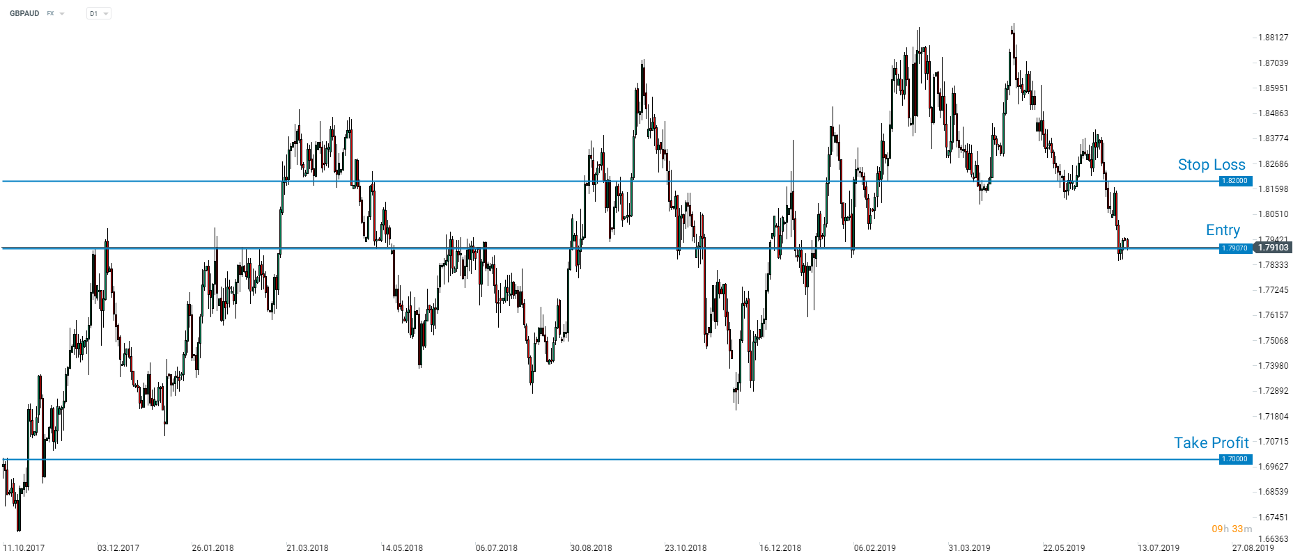 Morgan Stanley recomenda posições de venda no GBPAUD a preço de mercado com um  target nos 1.7000 e stop loss order nos 1.8200. Source: xStation5