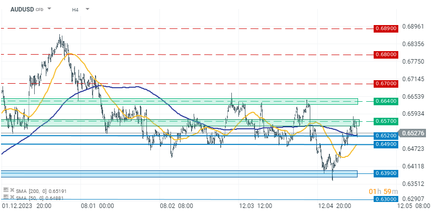 Após a divulgação do relatório, observamos também quedas nas yields das obrigações e do dólar australiano. Estas quedas estão a prolongar as correções no AUDUSD, que começou depois de atingir um nível de resistência chave em torno dos 0,65700. Se os sinais subsequentes da economia confirmarem esta perspetiva, poderá ser um argumento significativo para o RBA. As vendas a retalho são um indicador importante diretamente correlacionado com a inflação e as perspectivas de crescimento, influenciando potencialmente a posição hawkish do Reserve Bank of Australia (RBA) sobre a trajetória da taxa de juro.