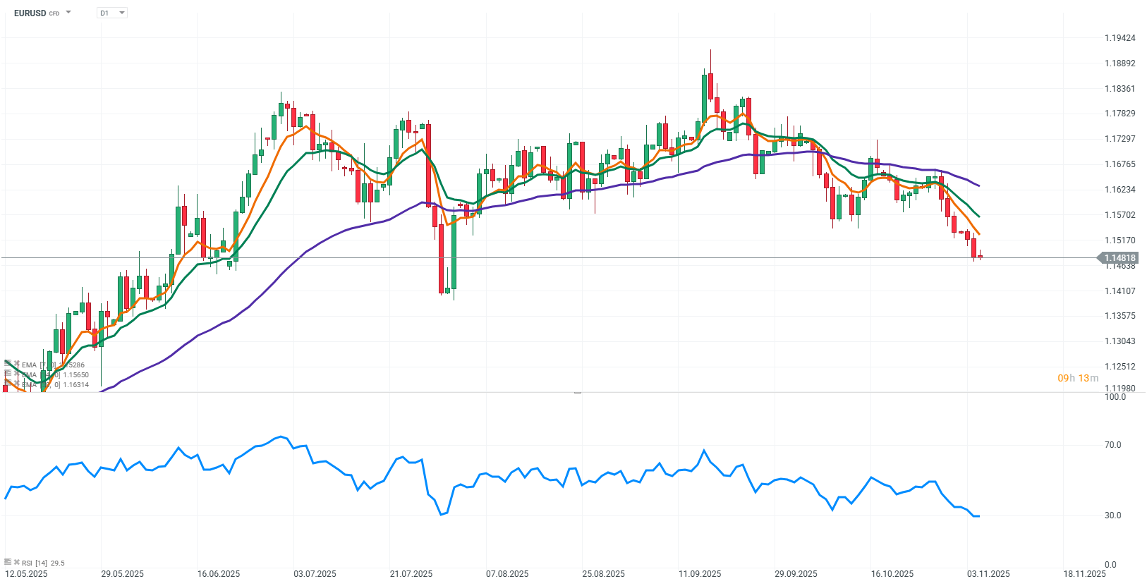 O par EUR/USD está atualmente a ser negociado a cerca de 1,1481 USD por euro. O mercado está a ser moldado por múltiplos fatores, tanto da Europa como dos EUA. Apesar dos sinais positivos da economia da zona euro, a força dominante do dólar e os dados macroeconómicos fundamentais dos EUA estão a definir o tom das negociações. Além disso, a paralisação contínua do governo dos EUA adiciona mais incerteza aos mercados.
