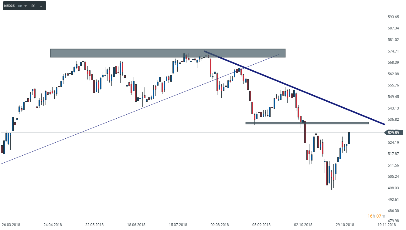 O sentimento risk-on que se apoderou do mercado após a abertura do mercado norte americano esta quarta-feira foi um chamado "relif rally" em que apesar do resultado das intercalares ter saído em linha com o esperado, o mercado tinha-se preparado para o pior cenário, e o rally mostra mesmo isso, o alivio da pressão sobre os activos. Hoje seguem fortes e fechos em zonas de máximos significa que podemos ter continuidade. O setup é simples, comprar no curto prazo até zonas de resistência de médio prazo. No entanto os trades que vou sugerir são os sell limit no ITA 40 e _NED25 . As zonas de sell limit são a zona onde se reúnem linhas de resistência horizontais e LTD. Os stops ficam acima dessa zona e TP metade da oscilação altista. No curto prazo podem aproveitar scalps nos time frames de curto prazo.