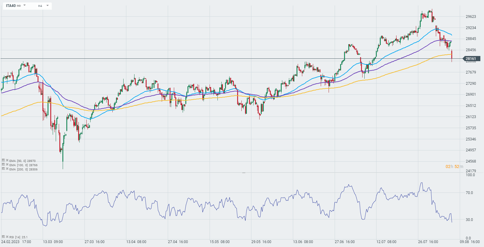 O Governo italiano aprovou um imposto de 40% sobre os lucros extraordinários dos bancos, o que levou a uma descida de mais de 2,1% no índice italiano, ITA40.