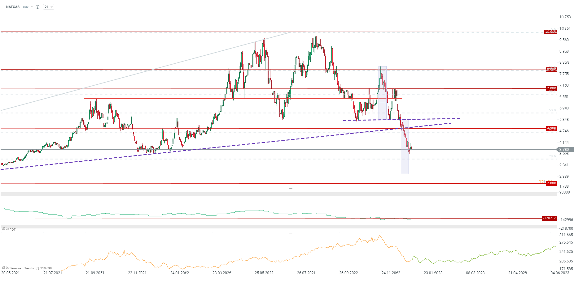 - Analisando os preços do gás de um ponto de vista técnico, existe a possibilidade do preço voltar a testar os níveis de Fibonacci nos 78,6%