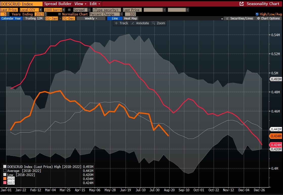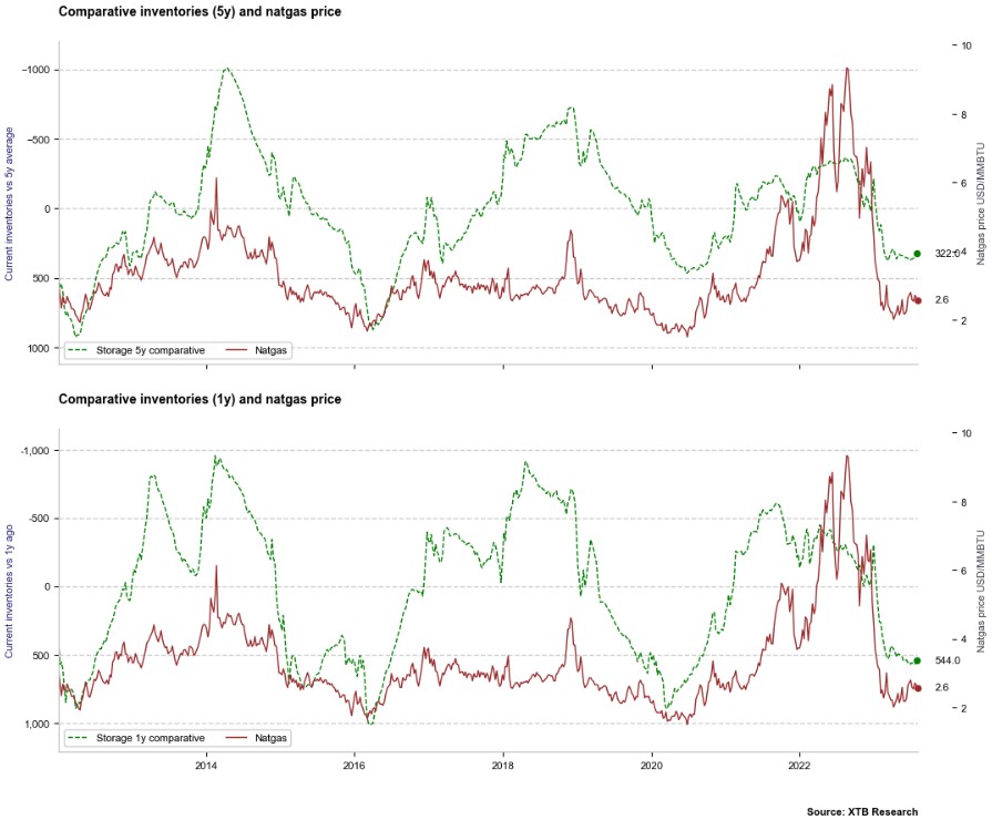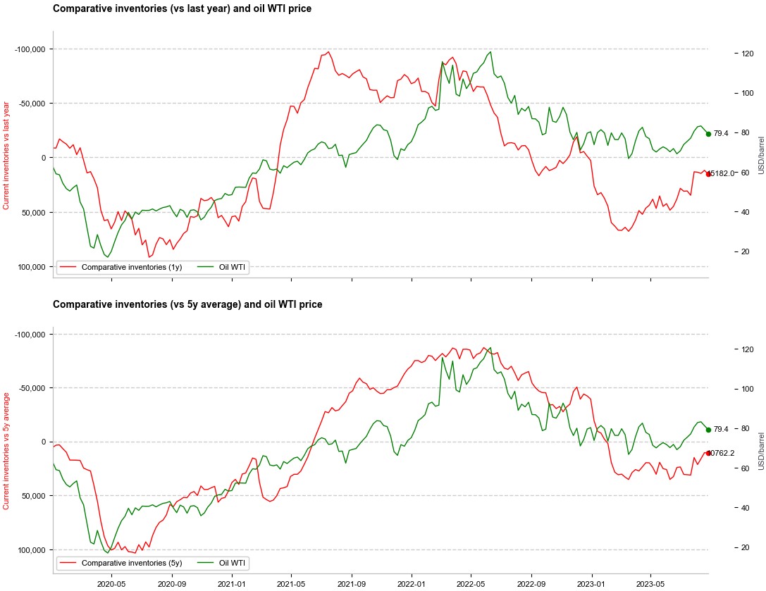 - Estamos a assistir a uma ligeira diminuição das reservas comparativas. No entanto, vale a pena notar que o excesso de oferta em relação ao ano passado ou à média de 5 anos tem persistido por um período relativamente longo em comparação com outros potenciais pontos de viragem