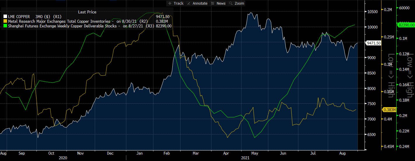 - Os aumentos dos preços do alumínio sugerem que a procura por cobre também deverá melhorar (principalmente do setor da construção)