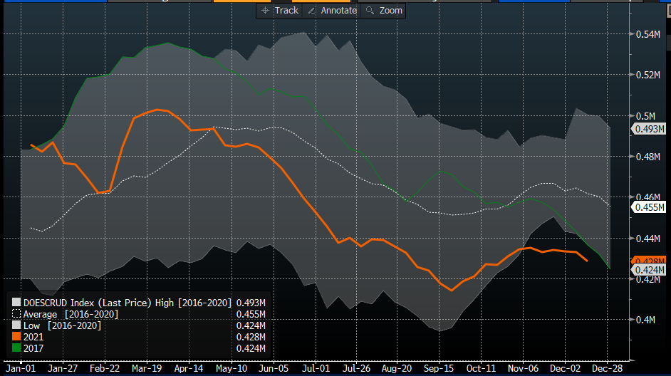 - As reservas de petróleo estão a descer em linha com os padrões sazonais. A procura nos próximos meses pode ser subestimada