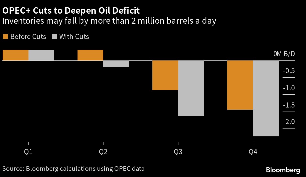Por outro lado, a EIA não é tão certa sobre o impacto da decisão da OPEP+ de cortar o abastecimento - a AIA ainda espera um excesso de oferta. No entanto, isto é muito provavelmente motivado por expectativas de deterioração da situação económica. Parece que a OPEP pode não estar a detectar uma potencial desaceleração económica, mantendo inalterada a previsão da procura e, simultaneamente, cortando a produção.