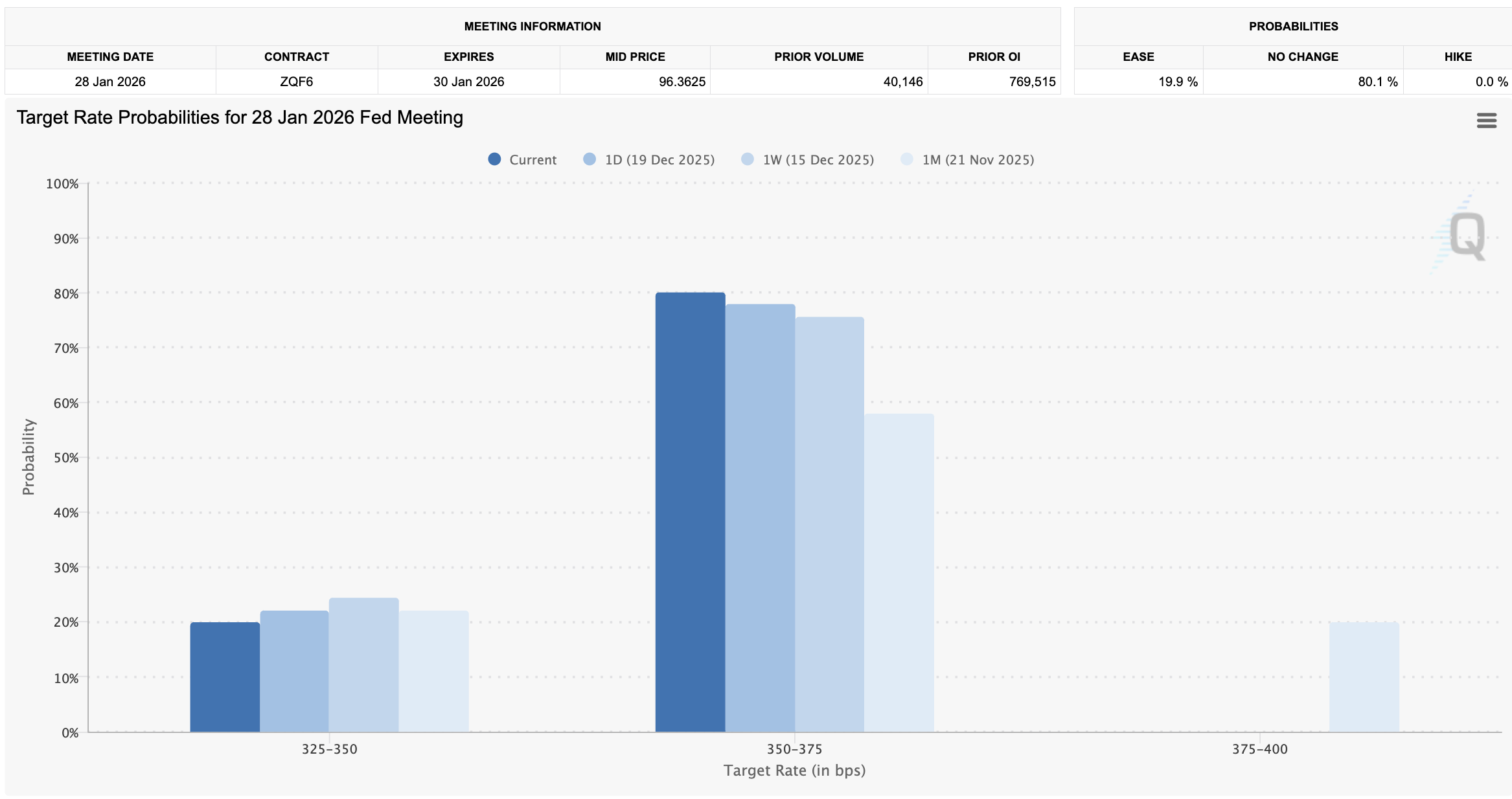 A última alta nos metais preciosos é impulsionada principalmente pelas expectativas cada vez mais dovish em relação a FED em 2026. O mercado abordou a reunião mais recente do FOMC com considerável cautela, uma vez que a decisão foi tomada sem dados importantes sobre a inflação ou o mercado de trabalho; no entanto, a postura calma de Powell e a ausência do chamado “corte hawkish” injetaram otimismo nos mercados. As expectativas de um corte nas taxas em janeiro diminuíram um pouco ao longo do último mês (atualmente, há cerca de 20% de probabilidade de outro corte, fonte: CME FedWatch), mas o mercado está novamente a prever mais de dois cortes nas taxas antes do final de 2026, apoiado ainda mais pela última leitura da inflação do IPC, que ficou bem abaixo das expectativas. A questão da nomeação de um novo presidente da Fed está a desempenhar um papel cada vez menos importante, uma vez que mesmo um candidato nomeado por Trump enfrentaria a difícil tarefa de persuadir o resto do FOMC a adotar uma postura mais dovish. No entanto, como as taxas de juro já mais baixas reduzem o custo de oportunidade de deter ouro em relação a outros ativos que rendem juros, especialmente obrigações do Estado, as expectativas em relação à Fed continuam a traduzir-se num aumento da procura, que já se encontra elevada.