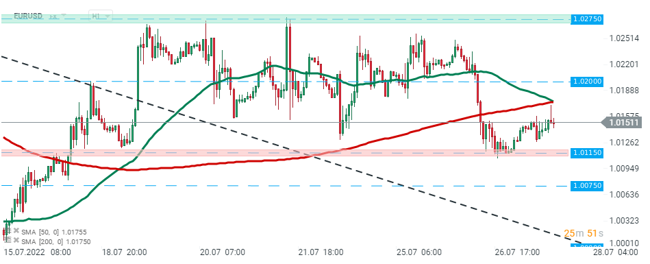 EURUSD pouco reagiu à publicação dos dados. O par continua a ser negociado perto da marca dos 1.0150. Fonte: xStation5