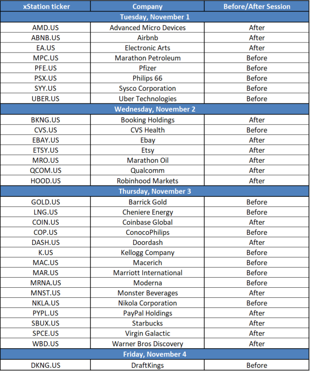 Não obstante, os investidores devem ter em mente que os principais impulsionadores dos mercados bolsistas esta semana serão provavelmente a decisão de taxas do Fed (quarta-feira, 18:00) e do Banco de Inglaterra (quinta-feira, 12:00), bem como o relatório do NFP dos EUA para Outubro (sexta-feira, 12:30).