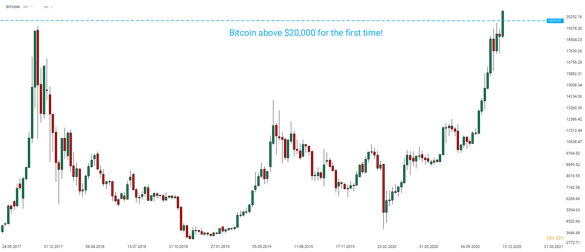 A Bitcoin atinge um novo recorde histórico e ultrapassa os $ 20.000. Fonte: xStation5