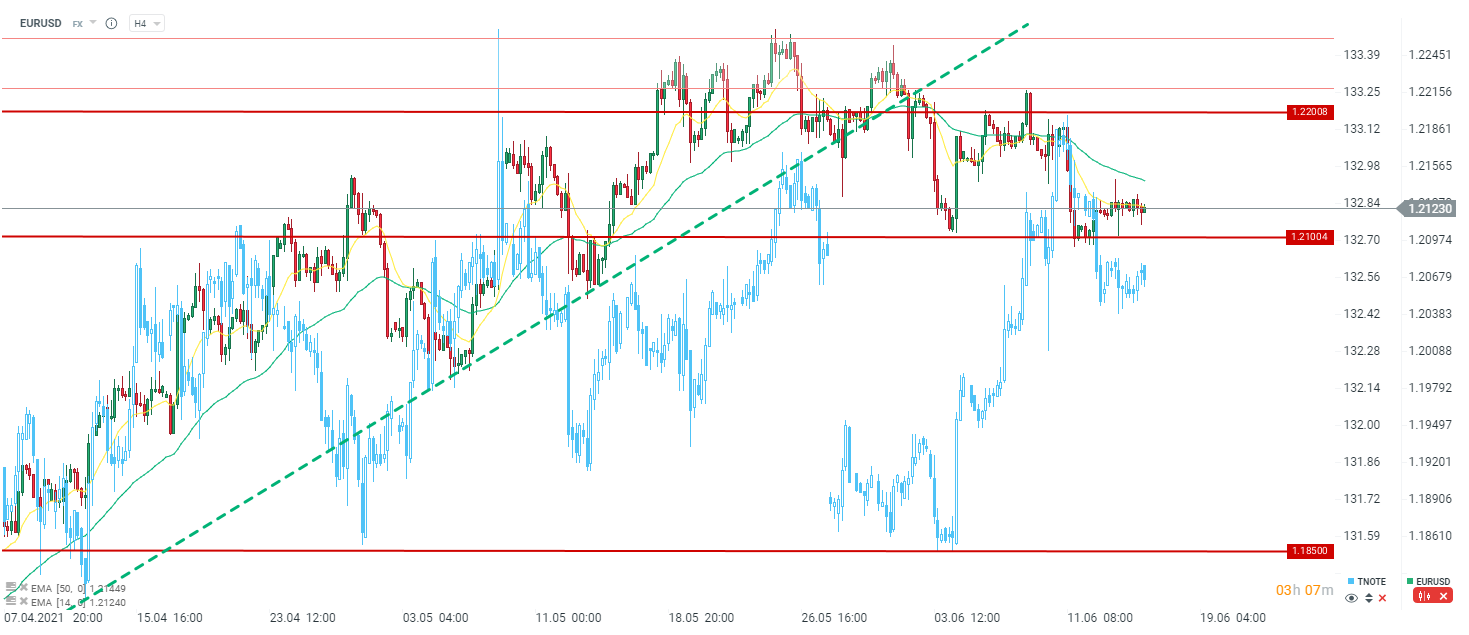 O par EUR/USD mantém-se lateralizado durante a sessão de hoje, enquanto os investidores aguardam pela divulgação dos resultados da reunião da FOMC. Fonte: xStation5
