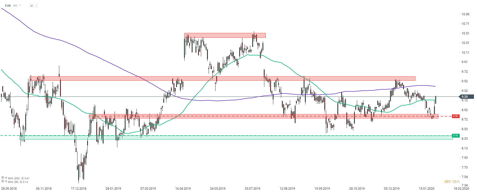 A Ford (F.US) deve abrir a subir 8% hoje, com as negociações no pré-mercado a apontar para os US $ 8,40. Uma zona de preços marcada por reações de preços de 2018 e início de 2019 pode ser encontrada na área. Os traders podem esperar que esta zona seja um suporte para assistir, pelo menos no início da sessão de caixa nos EUA. A resistência a curto prazo pode ser encontrada numa zona que varia em torno de US $ 8,80. Fonte: xStation5