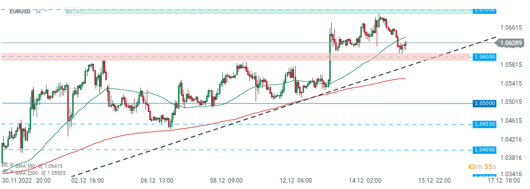 O EURUSD não está impressionado com a decisão da taxa do BCE. O par está a testar a média móvel de 50 horas. Fonte: xStation5