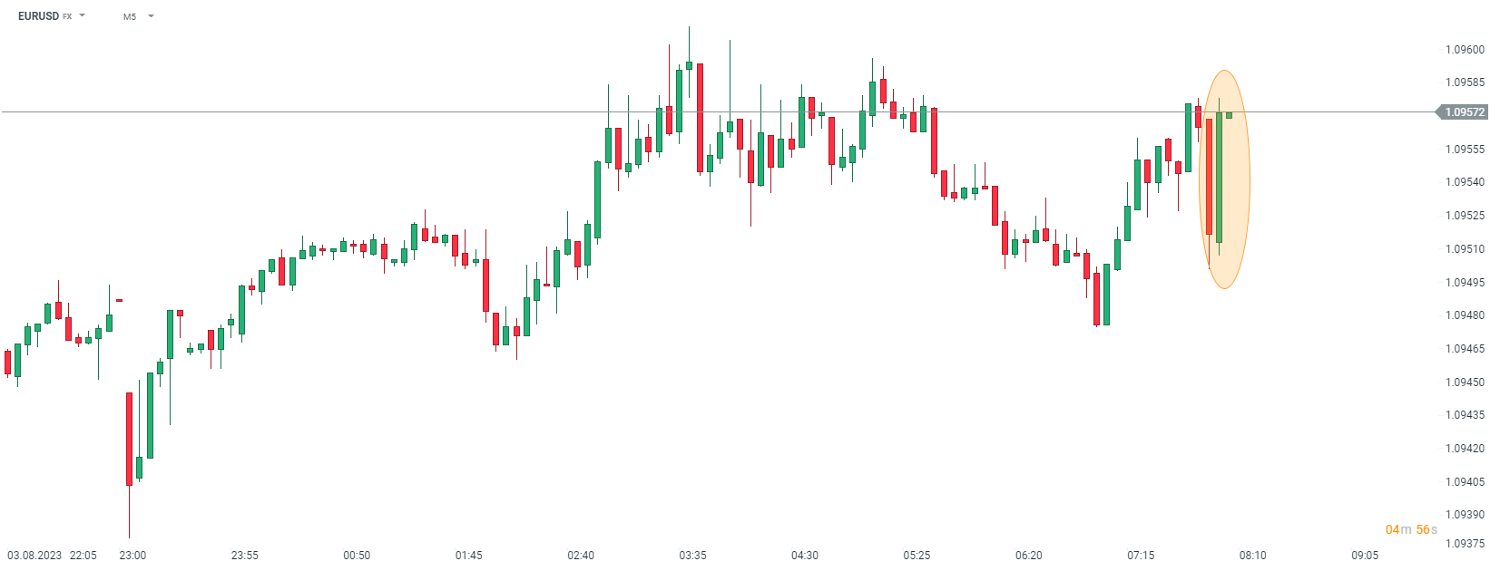 O euro reagiu em alta após a publicação dos dados, com o EURUSD a subir mais de 0,1%. O DAX (DE30) também reagiu e subiu mais de 0,2%.