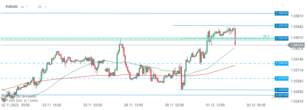 O par EURUSD quebrou abaixo do suporte de 1,0500 após o lançamento dos dados do NFP. Fonte:xStation5