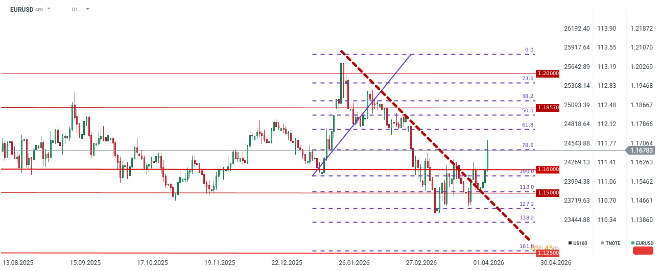 Qual é o veredicto final? Um tom «hawkish» em teoria, mas «desatualizado» na prática. Embora a ata sugira aumentos, a trégua de hoje com o Irão significa que os mercados provavelmente irão «ignorar» este sinal, concentrando-se, em vez disso, na questão de saber se a paz no Golfo Pérsico sobreviverá às próximas duas semanas. Se a trégua ruir, o cenário de aumento descrito na ata tornar-se-á o tema dominante do mercado. Em resposta, não estamos a observar, essencialmente, qualquer movimento significativo no EURUSD ou nos índices norte-americanos.