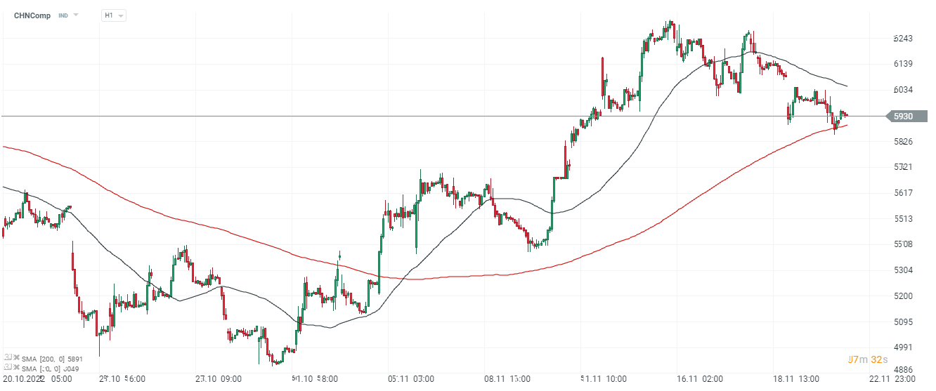 A cidade chinesa de Xangai vai reforçar as restrições covidianas para a entrada de pessoas na cidade a partir de 24 de Novembro. Neste momento, os mercados não reagiram exageradamente às notícias. O índice CHNComp registou declínios mínimos.