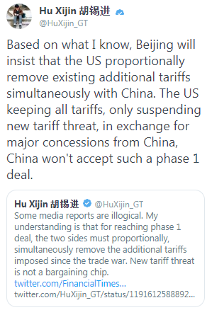 O comércio continua a dominar as manchetes com relatos de que o governo Trump está a considerar remover as taxas de US $ 112 mil milhões das importações chinesas, o que deu um impulso adicional durante a noite. Houve uma pequena queda quando o influente editor-chefe do Chinese and Global Times twittou o seguinte: