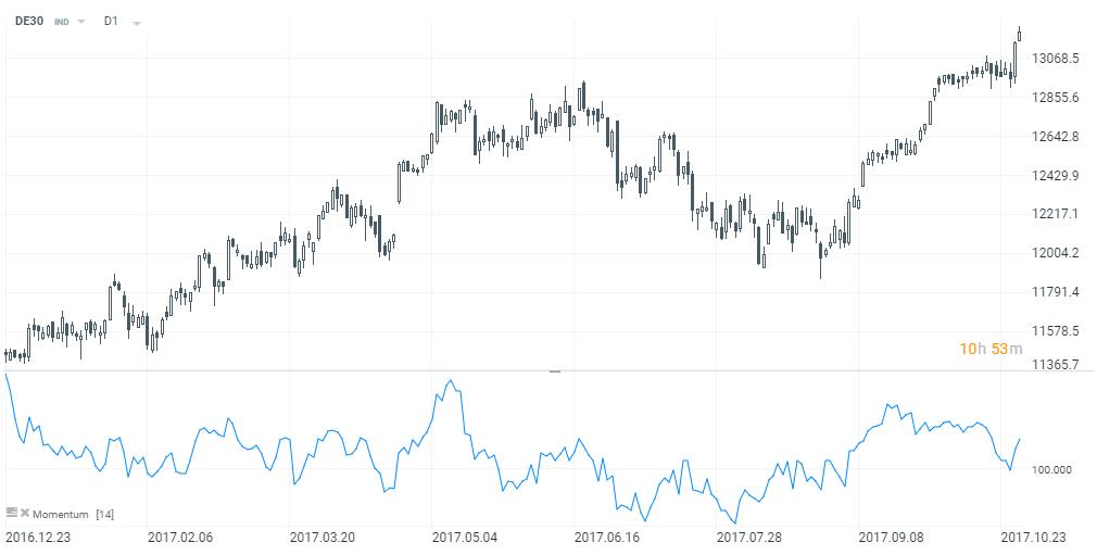 Daí que se o atual preço for maior que o preço passado, o Momentum é um indicador positivo. Em contraste, quando o atual preço estiver abaixo do preço praticado no passado, então o indicador de Momentum é negativo. O indicador de Momentum é classificado como um “oscilador” porque a curva que dele resulta oscila entre valores de uma linha central de “100”, que pode ou não estar desenhada no gráfico do indicador.