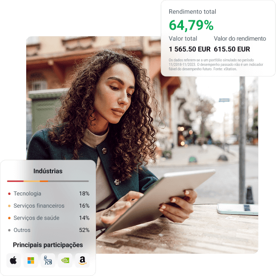 Um ETF é um fundo cotado numa bolsa de valores. Contém vários instrumentos, por exemplo, ações, obrigações ou matérias-primas, de modo que a compra de um único fundo lhe permite investir num setor, índice ou região seleccionados. Isto torna os ETFs instrumentos ideais para investimentos estáveis e a longo prazo.
