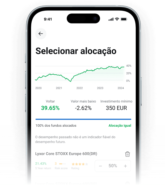 A interface intuitiva permitir-lhe-á criar facilmente o seu Plano e investir um determinado montante, a partir de 15 EUR. Os instrumentos financeiros que oferecemos são arriscados. Invista de forma responsável.