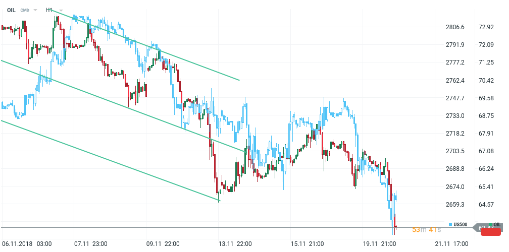 Grafic OIL, US500 (albastru) - H1. Sursa: xStation5
